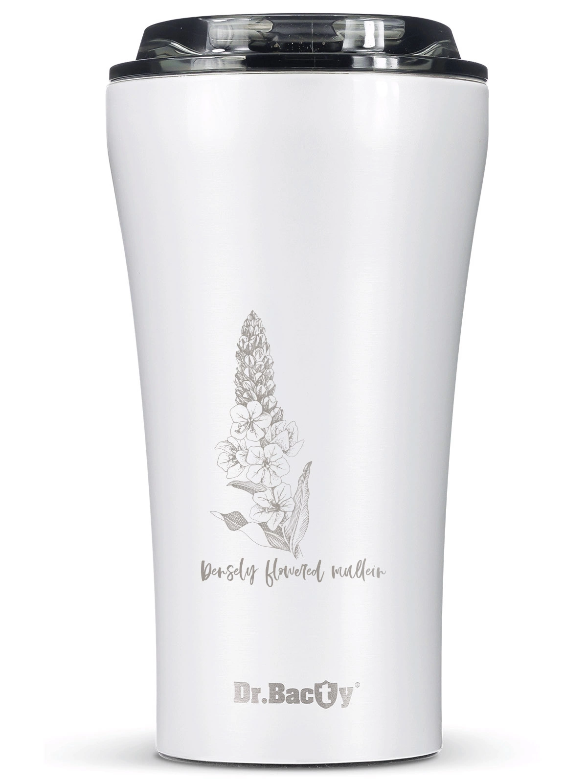 Kubek termiczny na kawę Dr.Bacty Apollo 2.0 360 ml "Dziewanna wielkokwiatowa" – Biały